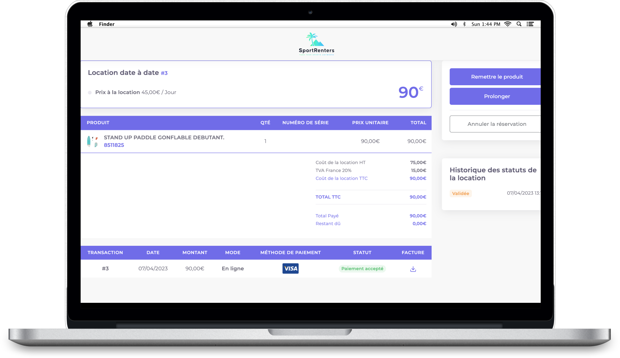 Gestion de l’émission des factures à chaque location et possibilité de faire des exports à chaque fin de mois